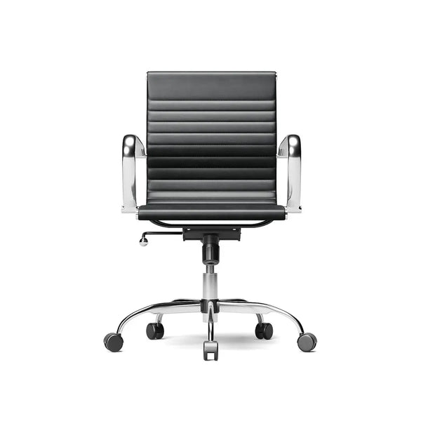 Timeless design meets everyday function in this mid-century modern office chair. Featuring a sleek silhouette, ergonomic backrest, and polished chrome base, it’s perfect for home offices, studios, and professional settings.